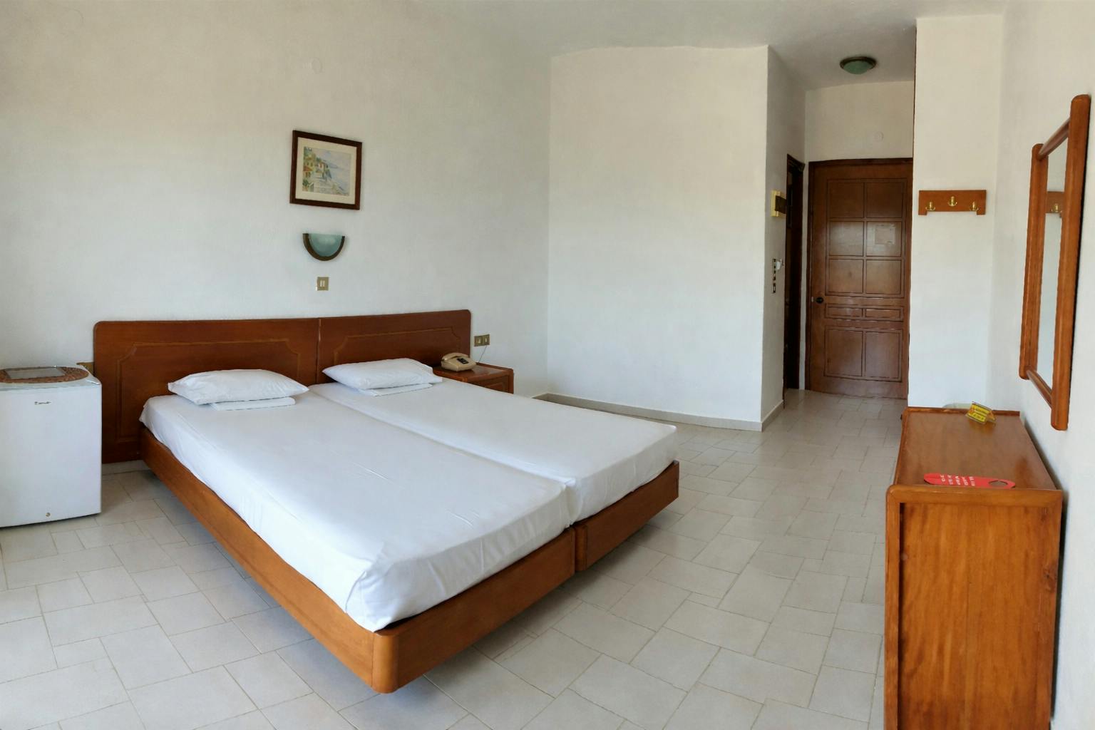 Spacious bedroom with private toilet and balcony. Located on the upper floor. The room is equipped with air-condition and mini fridge and wi-fi connection. Two single beds attached or apart, can accommodate up to two people regardless of their age.